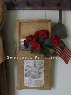 I just love gardening and made this sweet Americana Geranium Washboard Hanger with a reproduction Geranium print. It is perfect for hanging anywhere in your prim home, covered porch or in your potting shed. It is available in my Etsy Shop. Happy Friday!!
